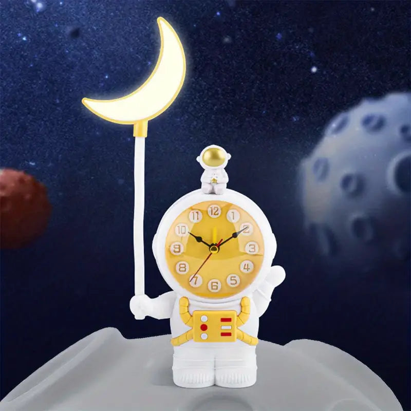 إليك ساعة المنبه الفضائية، الشريك المثالي لأطفالك، تأتي هذه الساعة بتصميم مستوحى من رواد الفضاء، مما يمنحها مظهرًا مبتكرًا وفريدا.