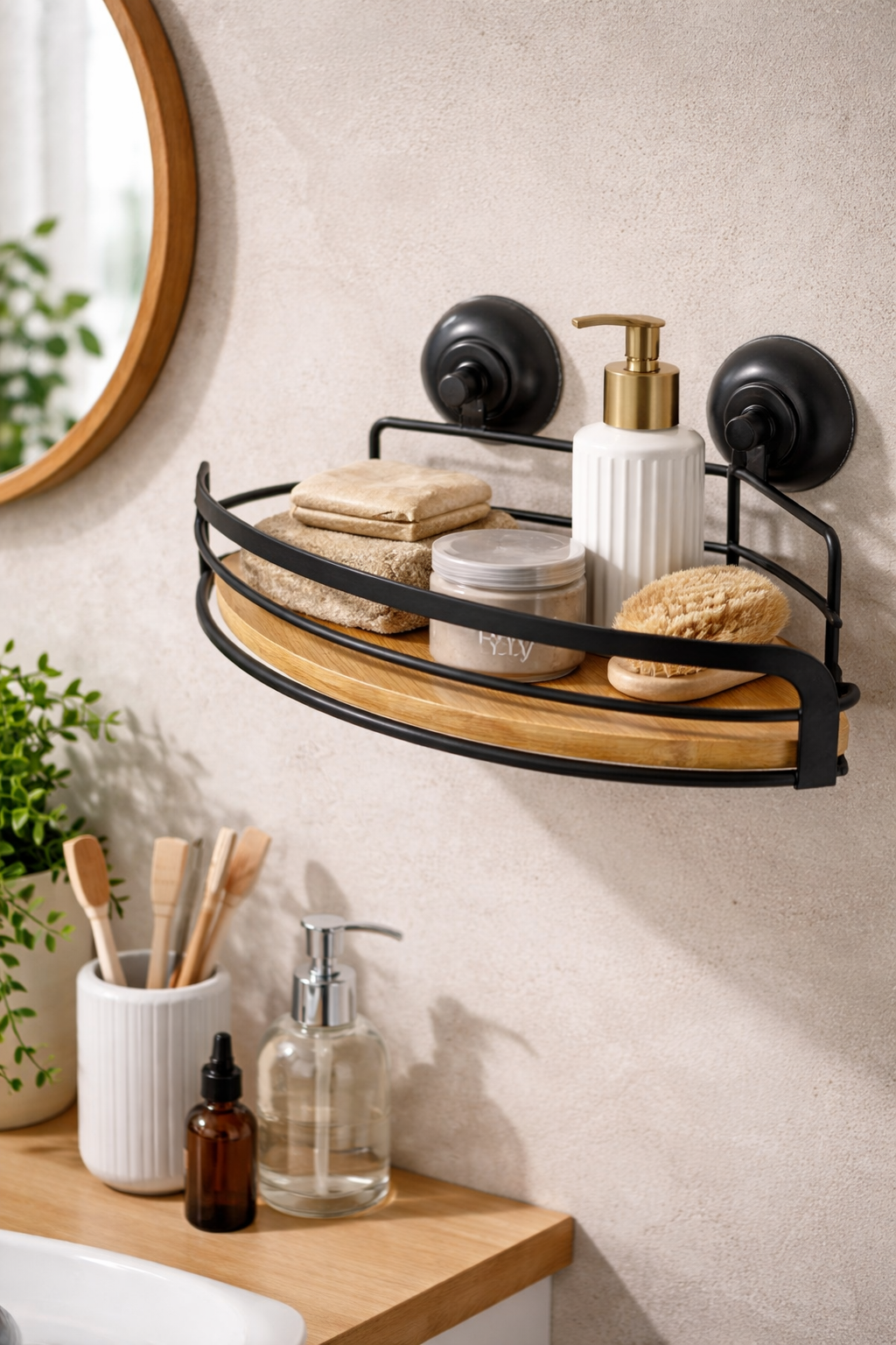 رف زاوية حديد مع شفاط يعطيك تنظيم ذكي ولمسة طبيعية وعصرية في نفس الوقت