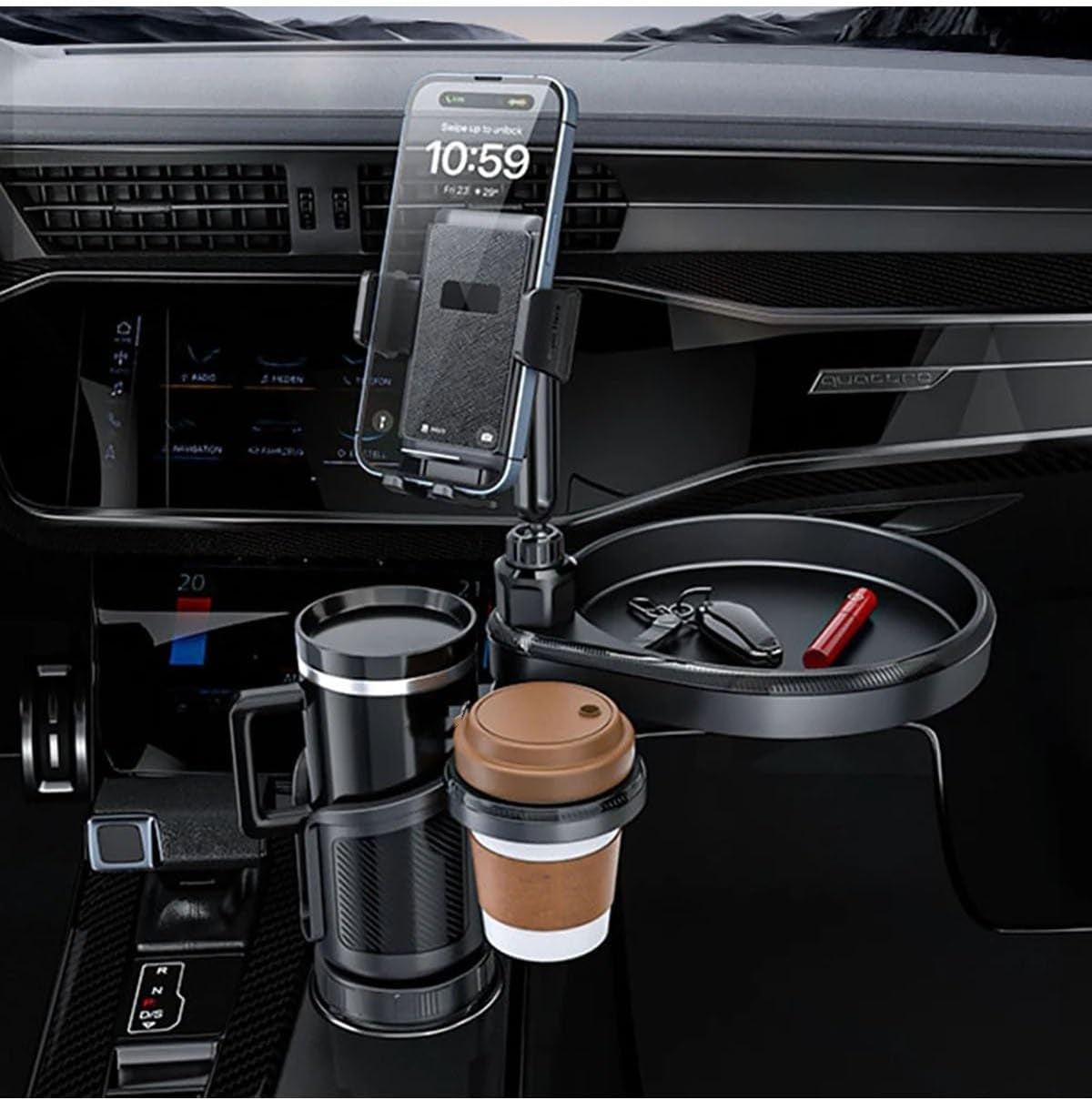 الآن يمكنك تخزين وإخراج أغراضك بسهولة مع حامل الأكواب المتعدد الوظائف 4 في 1 الذي يأتي بتصميم ذكي لتسهيل حياتك على الطريق