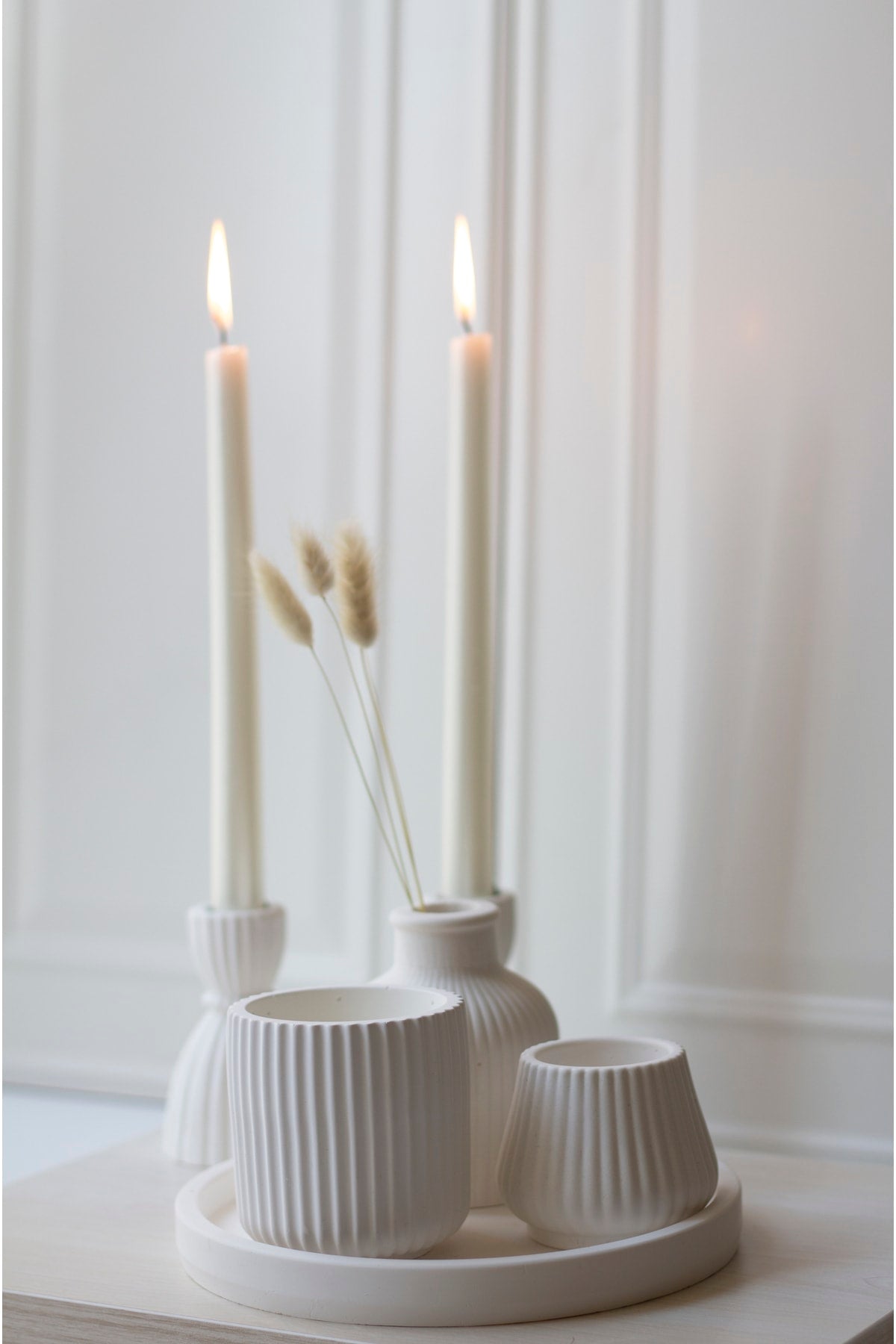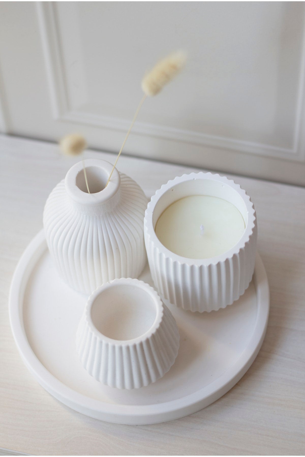 مزهرية 10 سم × 7 سم / شمعة 8 سم × 7 سم / صينية تقديم دائرية 17 سم / حامل شموع 6 سم × 2 سم
