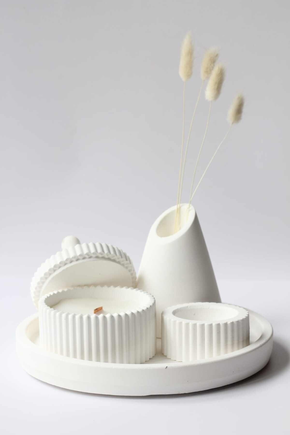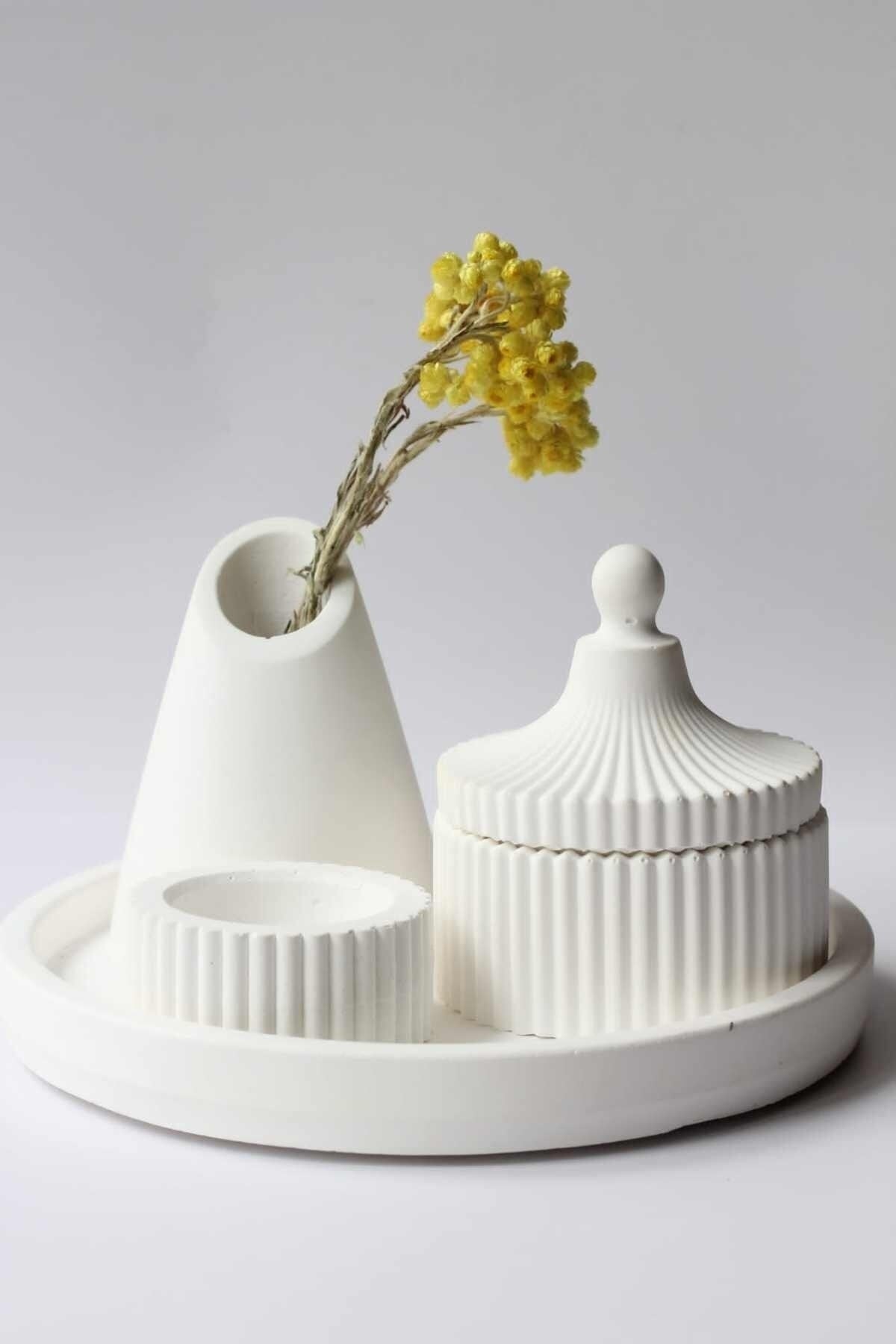مع مجموعتنا الجديدة المكونة من اكسسوارات شموع معطرة عصرية و مزهرية أنيقة بتصميم مخروطي مميز