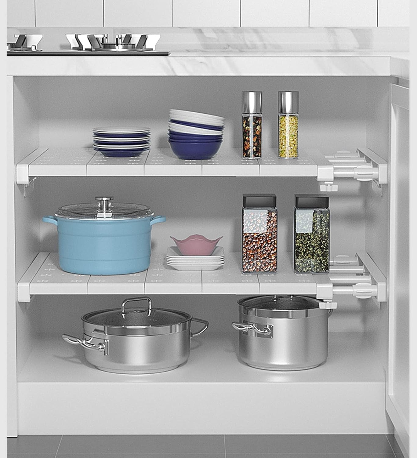 هذا الرف المتعدد الاستخدامات لا يقتصر على الخزانات فقط؛ يمكنك استخدامه في المطبخ، الحمام، المكتب، أو أي مكان آخر يحتاج إلى تنظيم وتوفير المساحة